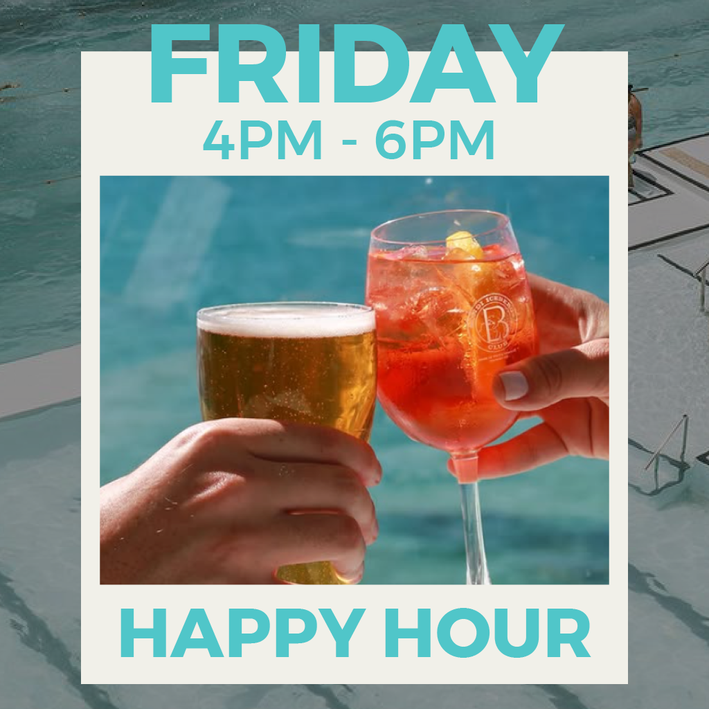 Join us at the club for Happy Hour, every Friday from 4pm - 6pm. $7 house beer schooners, $10 house spritz, & $15 Aperol Spritz!